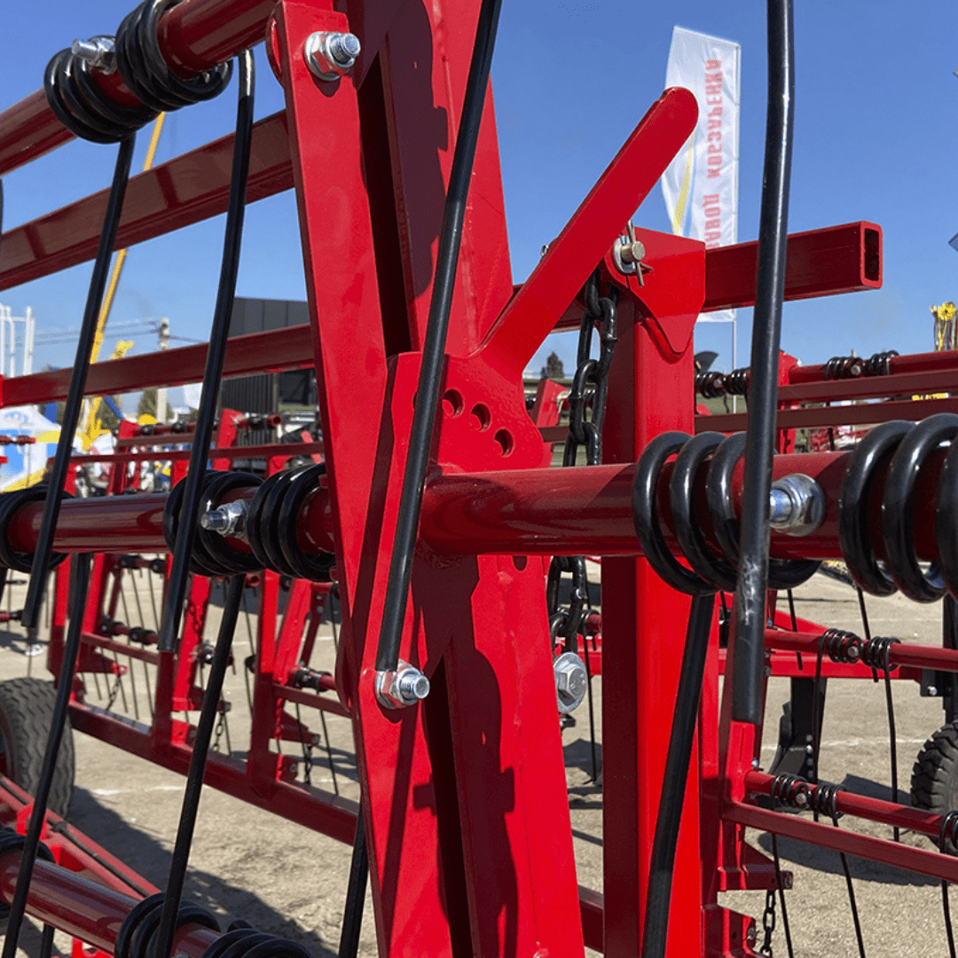 - Швидкість обробки: пружинні борони можуть працювати на швидкостях понад 12 км/год, що дозволяє досягати практично суцільного перекриття з глибиною обробки від 2 до 8 см.