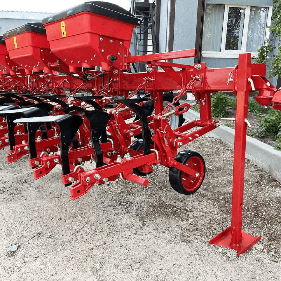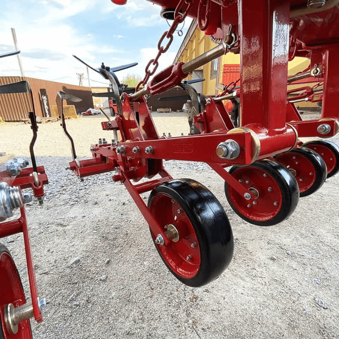 - Паралелограмна підвіска секцій робочих органів забезпечує точне копіювання рельєфу ґрунту, що дозволяє ефективно обробляти кожен рядок без пошкодження рослин.