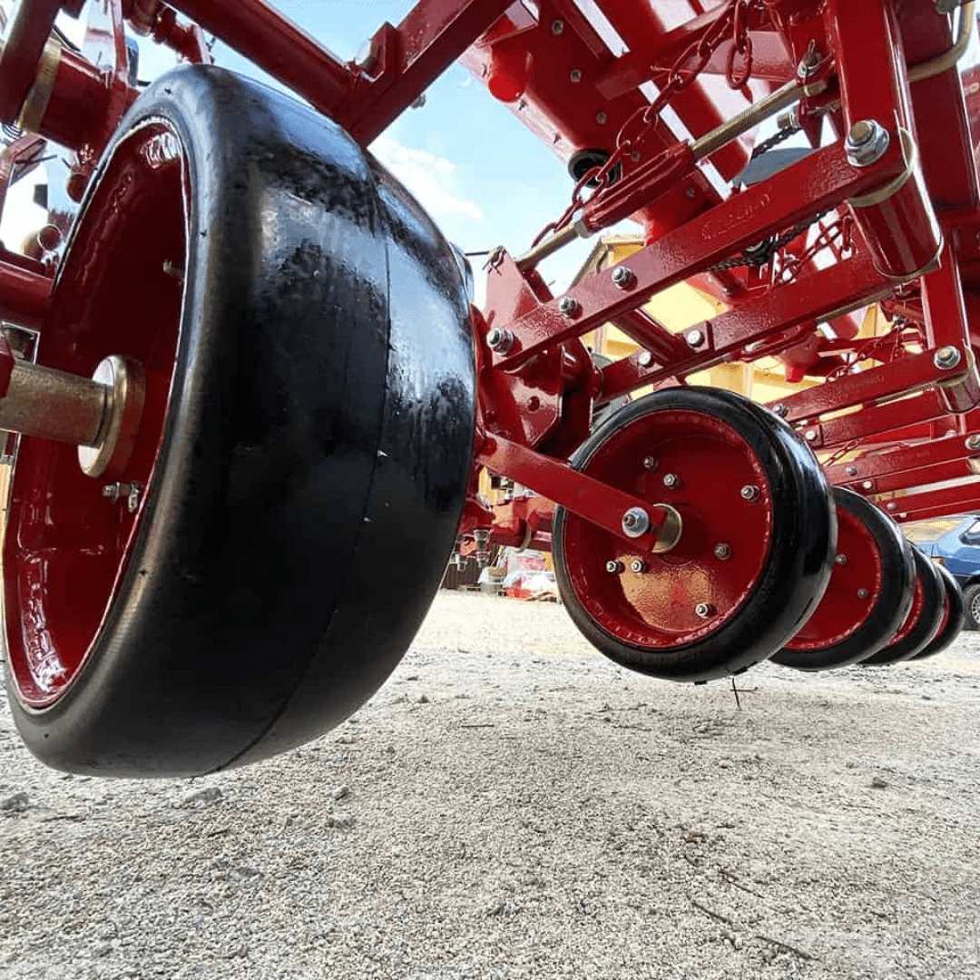 - Шини атмосферного тиску та обгумовані котки культиватора забезпечують самоочищення від налиплого бруду, що дозволяє зберігати стабільну роботу в умовах вологості.