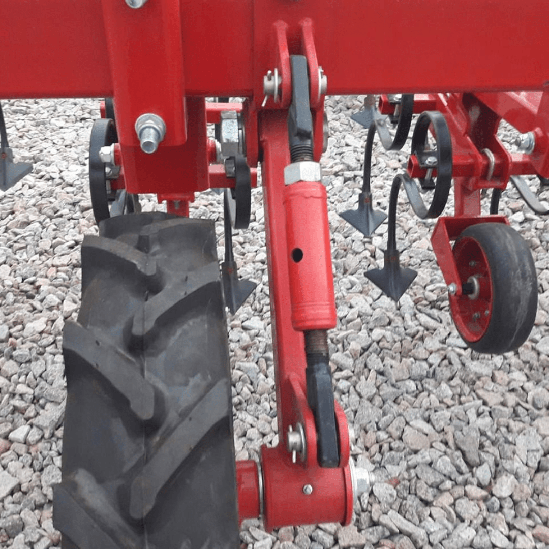 - Кожна секція обладнана 5 робочими органами з можливістю регулювання ширини міжряддя, що дозволяє адаптувати культиватор до різних типів посівів та умов.