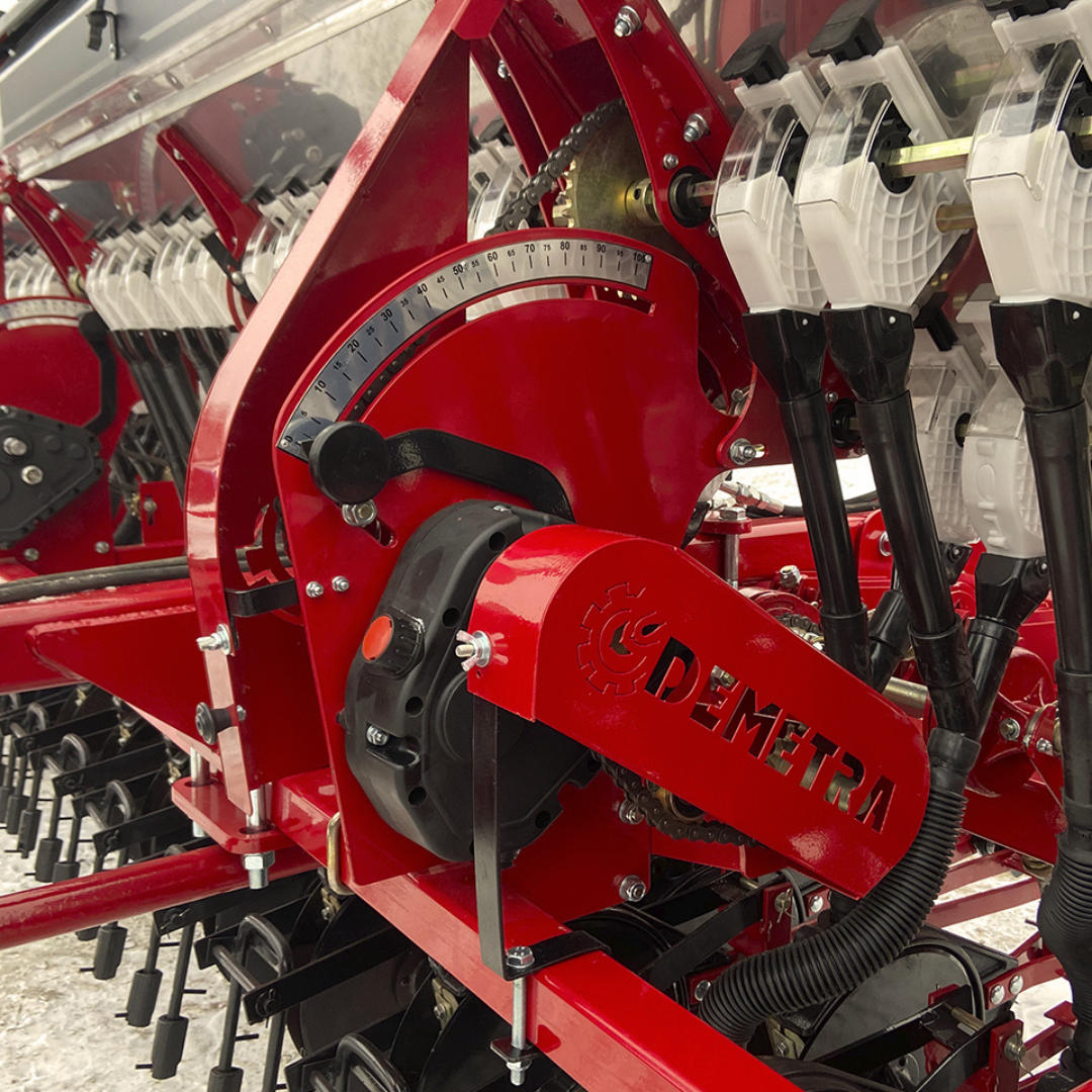 Завдяки варіатору, сівалка забезпечує плавне та точне регулювання норми висіву, що дозволяє налаштувати процес під конкретні умови та типи насіння. Це сприяє зменшенню перевитрат та забезпечує рівномірний посів, що позитивно впливає на врожайність.