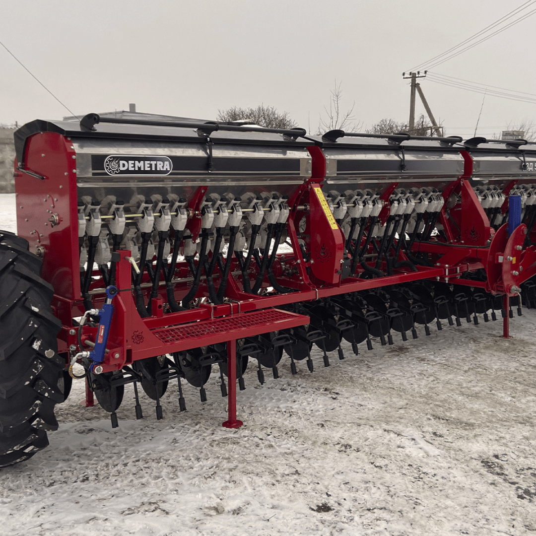 Сівалка оснащена апаратом для точного висіву дрібних насіннєвих культур, що забезпечує рівномірне розподілення насіння таких культур, як рапс та льон, по всьому полю.