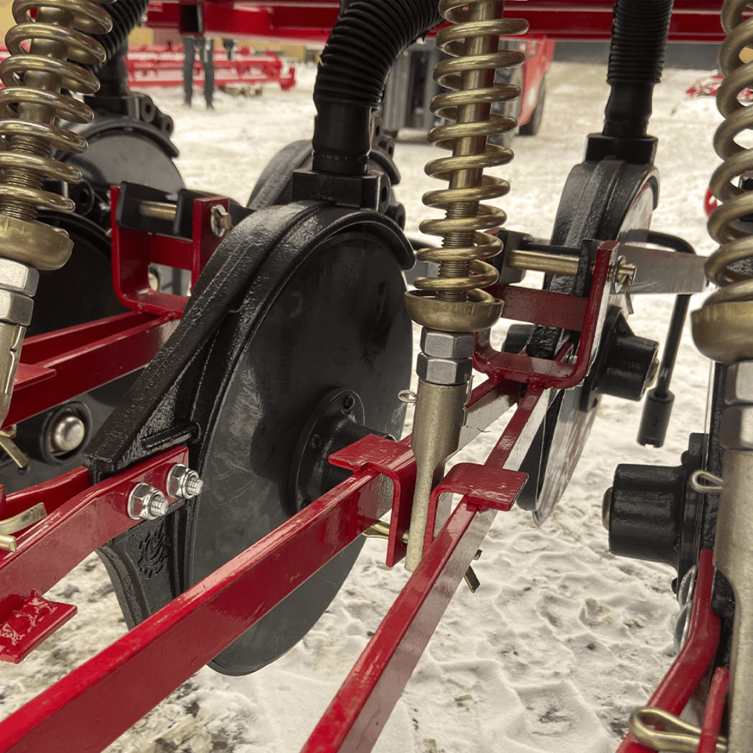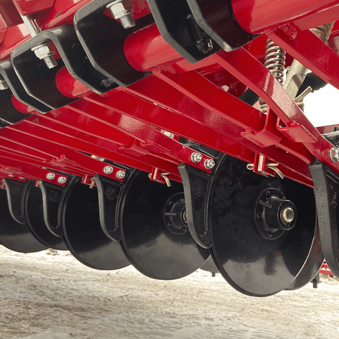 Диски сошника виготовлені з бор-вмістної сталі 30MnB5 товщиною 3 мм, що надає їм високу стійкість до зношування та механічних пошкоджень. Це забезпечує надійний посів навіть на важких ґрунтах.