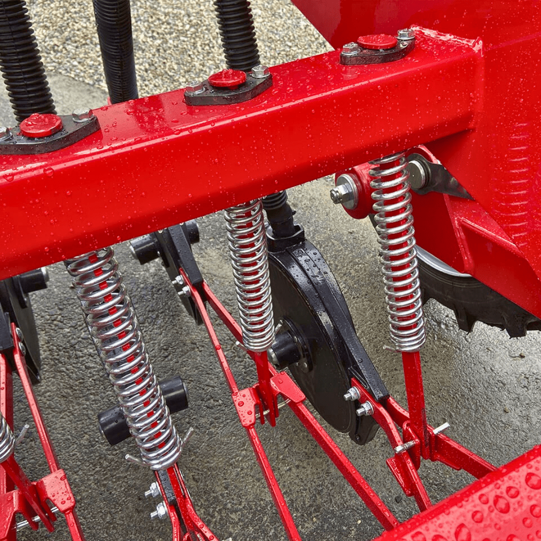- Сошники виготовлені з загартованої сталі марки 30MnB5 — підвищена міцність та довговічність.