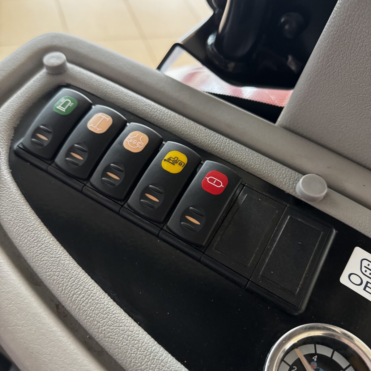 Інтеграція кнопок управління гідравлікою, увімкнення та вимкнення ВВП на лівому крилі трактора, що забезпечує зручне та швидке налаштування робочих параметрів. | |